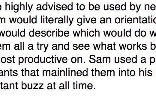 The other free advice I would give these witnesses is to think about sleep. The most common way stimulants cause psychosis (this is my personal opinion, I haven’t checked if the literature agrees with me) isn’t by some kind of direct dopaminergic agonism. It’s by making it feel possible to operate on two hours of sleep a night. This is not actually possible and will land you into some kind of very exotic and maladaptive mental state. Someone who takes lots of stimulants during the day and then manages to sleep fine at night might do better than someone who takes the same amount of stimulants in order to work 130 hour weeks.