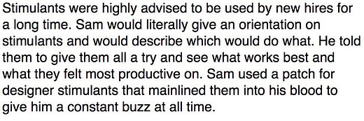 I find the growing reliance of many people on amphetamines to get their job done concerning. This was a fascinating read explaining what was happening at FTX on that front.