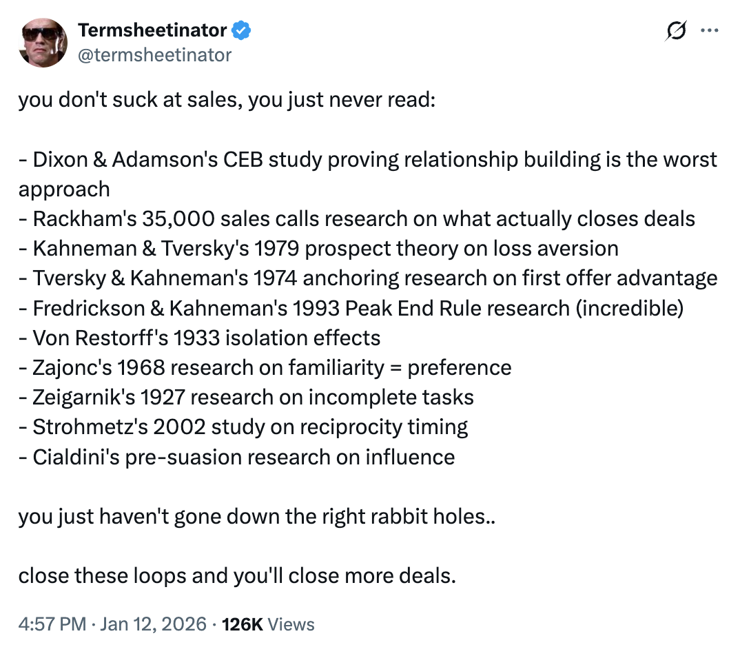 Finally —follow up relentlessly. People drop off the radar even when the sales call went incredibly well, and it’s usually just because they’re busy, not because they hate you. I can’t tell you how many big deals I closed where I had to follow up >15 times to get the deal done. Be shameless here — you want to get a clear “no” or a clear “yes” or a clear “I’m doing XYZ and it will take me 5 days, follow up next week”. I usually followed up every 3 days or so, but people differ and the specifics matter here.